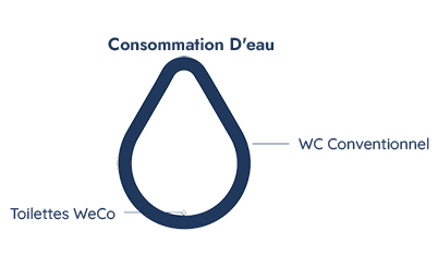 Les toilettes WeCo consomment en moyenne 97% d’eau en moins que les toilettes raccordés : nos usagers conservent le confort des toilettes classiques, tout en permettant de considérables économies d’eau ! Cette prouesse technologique est rendue possible par l’autonomie de nos toilettes, qui désinfectent et recyclent l’eau des chasses sur place